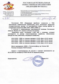 Ростовская РОО «Федерация футбола» совместно с РОО «Ростовская любительская лига» организует областной «Рождественский турнир» по мини-футболу среди команд ДЮСШ в возрастных категориях 2006, 2007, 2008 и 2009 г.р.