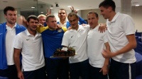 На вечернем ужине, после победы над сербской «Воеводиной», футболисты и тренерский штаб дончан поздравили полузащитника Александра Мочкарского, которому сегодня исполнился 31 год. Именинник получил из рук одноклубников праздничный торт.