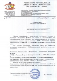 Просим командировать представителя футбольной команды в областную Федерацию футбола (по адресу г. Ростов-на-Дону, ул. Красноармейская, 68) на жеребьевку XIX Зимнего Первенства по футболу, посвященного памяти игрока команды «СКА», бронзового Призера Чемпионата Мира – Виктора ГЕТМАНОВА – 23 января 2020 года в 12.00 часов.