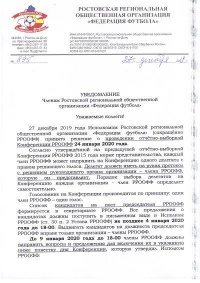 27 декабря 2019 года Исполкомом Ростовской региональной общественной организации «Федерация футбола» (сокращённо РРООФФ) принято решение о проведении отчётно-выборной Конференции РРООФФ 24 января 2020 года.
