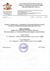 Обращаем ваше внимание на изменения времени начала матчей 7 и 23 туров Кубка Губернатора - Чемпионате Ростовской области среди команд высшей лиги. Встречи между «Чайкой-М» и «АФ им. Понедельника - М» и «Чайкой-М» и«СКА-2-ДГТУ» начнутся в15:30.