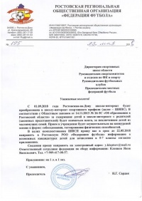 В целях комплектования ШИСП прошу вас в срок до 22.05.2018 направить в Ростовскую РОО «Федерацию футбола» информацию о возможных кандидатурах детей для зачисления в 5-7 классы согласно приложению.