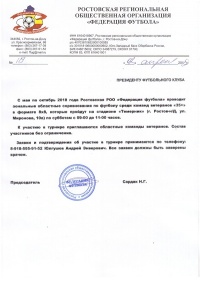 С мая по октябрь 2018 года Ростовская РОО «Федерация футбола» проводит зональные областные соревнования по футболу среди команд ветеранов «35+» в формате 8х8, которые пройдут на стадионе «Темерник» (г. Ростов-н/Д, ул. Миронова, 10а) по субботам с 09-00 до 11-00 часов.