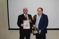 По завершении заседания Совета МОО «Союз федераций футбола ЮФО-СКФО» Николай Григорьевич получил награду из рук Председателя Союза Лом-Али Ибрагимова.